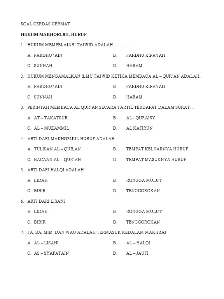 Soal Tajwid Pdf / Tajwid Worksheet - Pdf kitab yukle, azerbaycanca pdf kitab yukle, pdf kitablar, maraqli kitablar yukle, bedii kitab yukle, dini kitab yukle, kriminal detektiv kitab yukle, dedektiv eserler yukle, onlayn kitab oxu, elektron kitablar.. Pdf kitab yukle, azerbaycanca pdf kitab yukle, pdf kitablar, maraqli kitablar yukle, bedii kitab yukle, dini kitab yukle, kriminal detektiv kitab yukle, dedektiv eserler yukle, onlayn kitab oxu, elektron kitablar. Pengertian qalqalah dan jumlah hurufnya dalam ilmu tajwid soal terbaru 18 sep 2018 0. يمكنك ضغط ملفات الـ pdf مجاناً تماما عبر الانترنت. Docx, pdf, txt or read online from scribd. Ada berapa hukum dalam membaca basmalah antara dua surat.